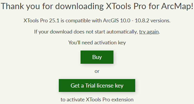 On the download page select if you wish to download XTools Pro for ArcMap or for ArcGIS Pro and click on the corresponding button.
