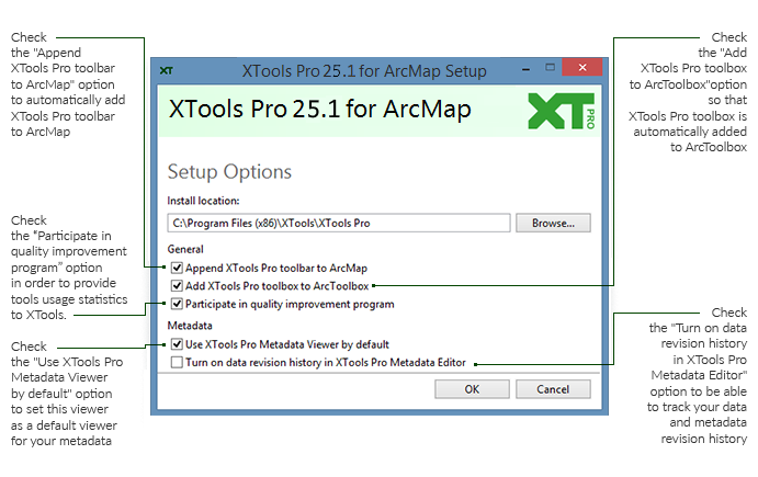 At the “Setup Options” stage check the boxes near tasks that should be performed during XTools Pro installation:
